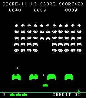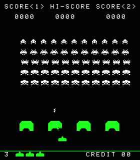 玩家操作以2D点阵图构成的太空船,在充满外星侵略者的太空中进行一连串的抵抗任务。玩家除了能左右平移太空船来闪躲敌人,还可以躲在掩体后面避免敌人的自杀攻击。