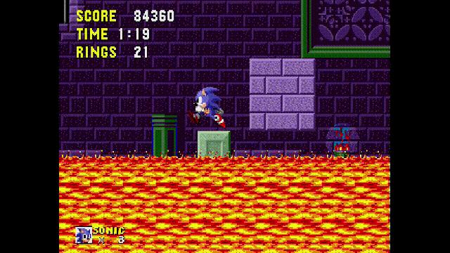 即使到了今天,这款游戏中索尼克的速度感都让人惊叹不已。玩家只需要轻轻按下按钮,就可以看到他健步如飞般冲向屏幕的边缘,消失在视线中。而他在关卡中四处弹跳的样子,又与弹珠台有了些许相似之处。事实上,游戏中的一个关卡就是完全模仿了弹珠台的设计。这也证明了对索尼克而言,像弹珠一样在场景中弹来弹去,甚至在金属管道中穿梭已经是再平常不过的事情。