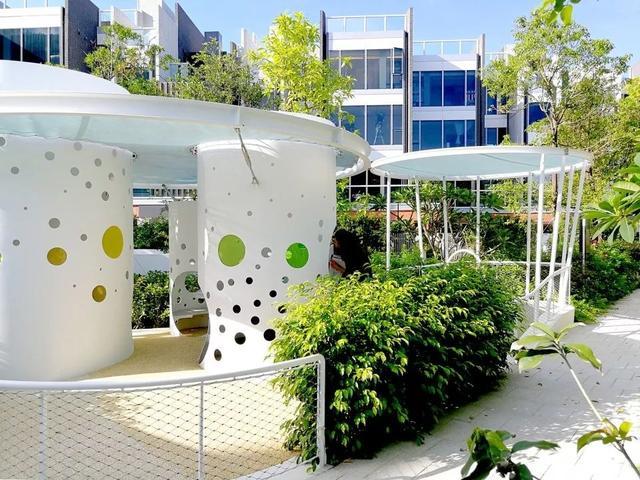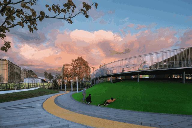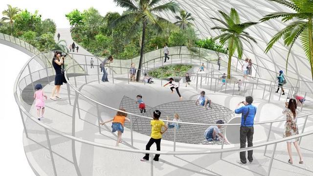 乐园局部,倾斜草坪提供休息空间