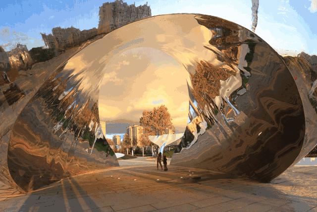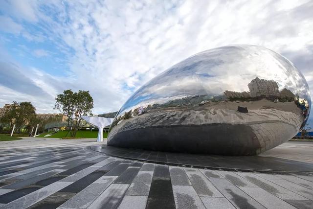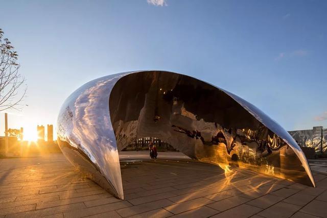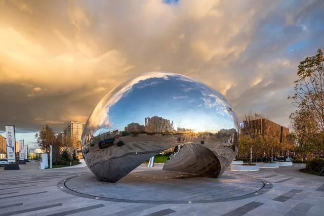 正对街角,放置酷似芝加哥“云门”的巨型雕塑,致敬艺术家安尼施·卡普尔 AnishKapoor的同时,传承经典与永恒。超然的力量与温柔,唤起人内心的温和情感和无限遐思。