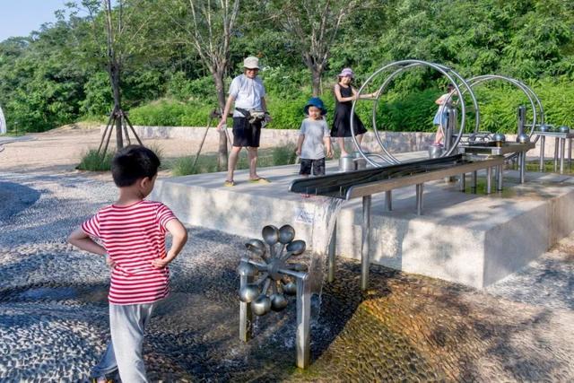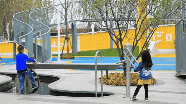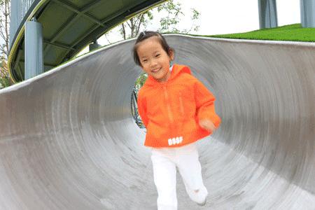 在可参与式的游乐设施当中游戏,探索和发现的乐趣不自觉的挂上每个孩童的笑脸。