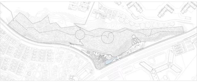 通过地形塑造、空间围合,创设高低起伏的谷地,让人感受高高低低不同的变化。从狭窄的曲线中穿过,邂逅开阔的谷地,爬到台地之顶,俯瞰欢愉人间,滑下奇幻之梯,回到纯净本真。在高高低低的起伏之间,随心所欲,任意畅享,感受自然的冒险,艺术的透彻和生活的温情。