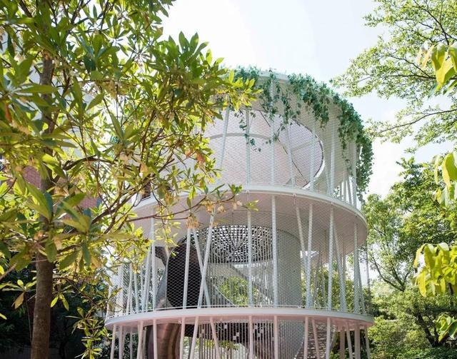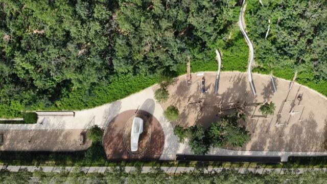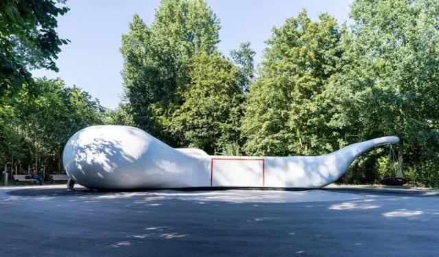 ▼“圆柱”和公园的绿植相映成趣