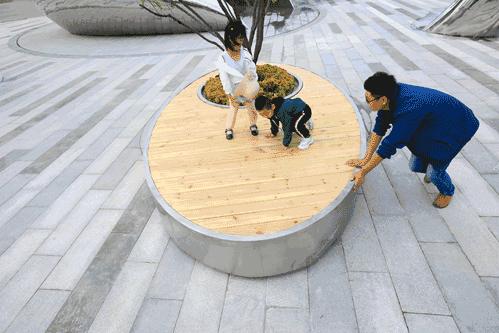 可以转动的树池座椅,让使用者在旋转和交流中获得喜悦与欢愉。
