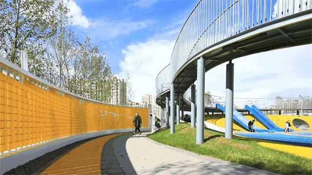 乐园局部,模块化方法的使用解决了边缘通行、行人流通和边缘景观的问题