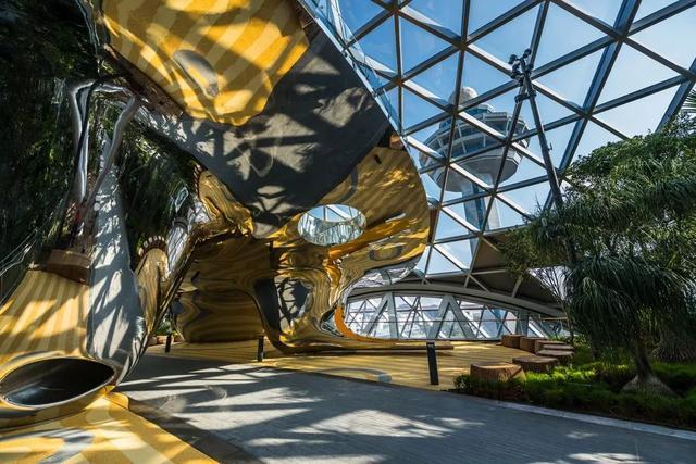 游乐场的观景台是机场综合大楼中最高的可进入区域,能够观赏到整个航站楼内部美妙的景象。使这个游戏雕塑成为一个充满吸引力的大众娱乐与社交之地,也吸引着所有年龄段的儿童和家庭来这里冒险玩耍。在充满挑战性的滑梯上爬上滑下,从圆锥体中滑到底部惊呼“WOW”的体验,让游客一次又一次的回到这里。