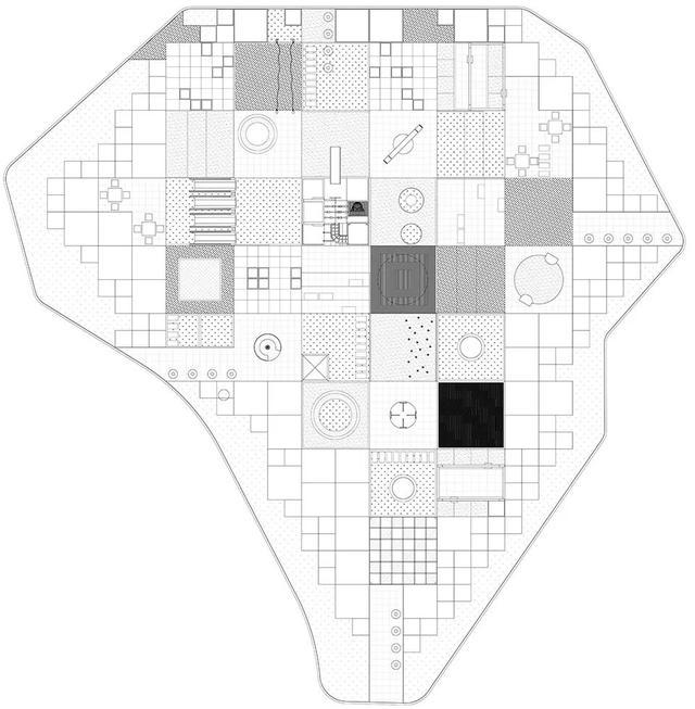 另外,棋盘状的广场以多层次的方式发展,呈现出一个有趣的人工地形,越朝向中心高度越增长,我们将”马“作为战略标志放置在顶部。