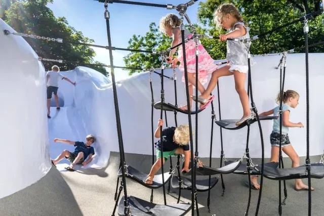 为了设计出既有吸引力的,又能满足游人闲游驻足需要的景观装置,设计师创造出一种有机的结构来满足更多游戏功能。儿童可以在装置中攀爬,以及吊挂滑行。然而这些游戏方式并不是显而易见的,它需要等待孩子们去发掘,并体会这种发现与探索的乐趣。