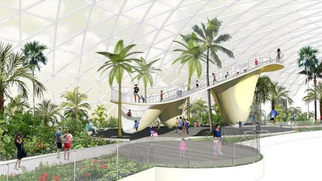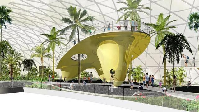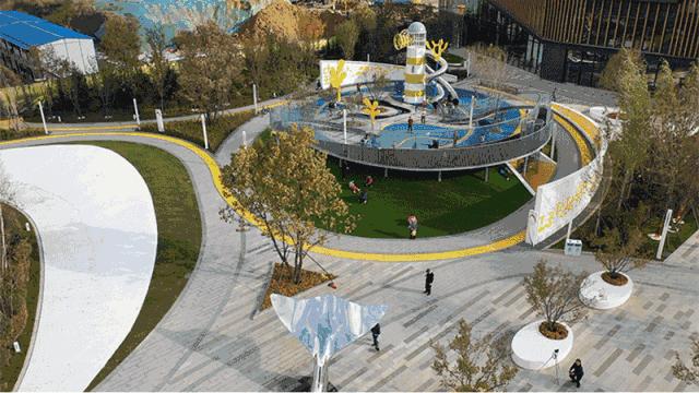 中央主题游乐场及退台状的像素休息区