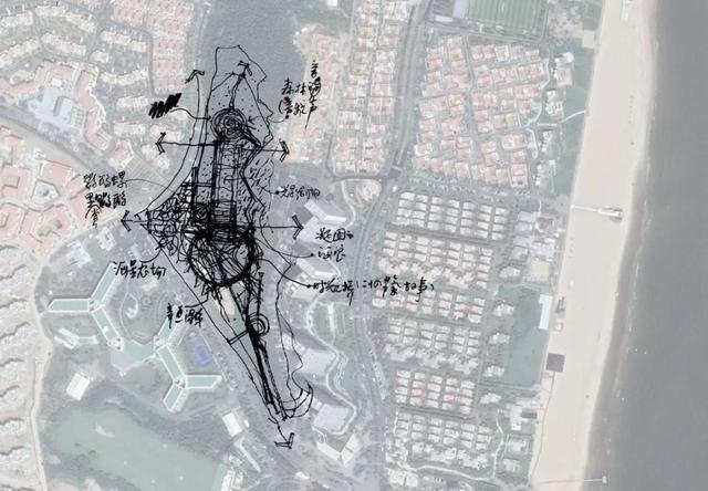 现状永远都是我们设计的基础。场地上最显着的景观是一个巨大的沙丘,以及沙丘之上的刺槐林。秦皇岛沿海沙丘刺槐林在过去十年减少了大半,作为设计师,我们觉得非常可惜,恨不得将所有的刺槐林都完整地保留下来。