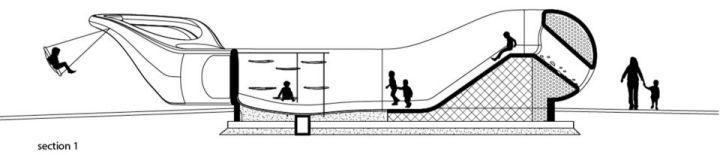 随着鲸鱼向内延伸,有机曲线的儿童活动场地以怀抱的姿态迎接来自四面八方的使用者。