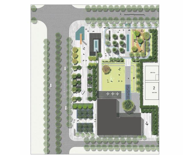 设计地块位于长春南部新城,为长春万科的市政代建公共绿地,周边多为新建住宅和新建建筑,缺少街区型公共开放空间。基地南侧为售楼处,东南侧为商铺。